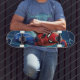 Spider-Man saute, bras tendu et filme la toile dans ce graphique de caractères extraordinaire.
