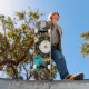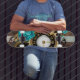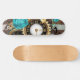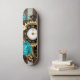 Skateboard Steampunk Clock and Turquoise Roses on Striped
