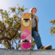 Ce skateboard Sunrise Retro les années 70 Boho Yellow Pink sera tout aussi cool dans la rue ou sur un mur