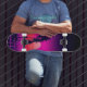 Promenez-vous dans les rues dans un style rétro-futuriste avec ce skateboard à vague de vapeur, avec une orange électrique couché de soleil, dressé contre un ciel étoilé foncé. Des palmiers silhoués s'élèvent, tandis qu'une grille rétro brillante s'étend au loin, capturant l'essence de la nostalgie synthonique des années 80. Des effets de paillettes subtils, des lignes de balayage et une lueur rêveuse donnent vie à ce design, le rendant parfait pour les patineurs qui aiment l'esthétique audacieuse et les vibrations futuristes. Que vous soyez en train de déchiqueter le trottoir ou de l'afficher sous forme d'art, ce skateboard accrocheur est un incontournable pour tous les passionnés de vaporwave.