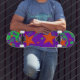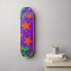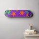 Skateboard avec un arrière - plan tourbillonnant violet et vert parsemé d'étoiles magiques, orange et vertes. Un design personnalisable violet, vert et orange pour vous permettre d'ajouter vos propres textes, images et idées. Créé à l'aide de techniques numériques par Jess Perry.