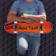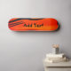 Ce skateboard a un design orange et vous pouvez y ajouter votre propre texte.