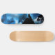 Une planche à roulettes qui comporte un loup hurlant sur une roche régulière. Le conseil est en grande partie bleu, avec quelques nuances noires