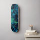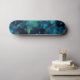 A grungy mixed media design in a turquoise and yellow color palette, on a dark background.
