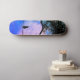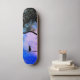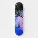 Fantastique pleine lune de teintes violettes et le ciel bleu cobalt avec un chat noir sur un fil le regardant