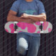 Skateboard Vache rose et blanc chaud