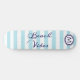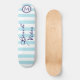 Patiner en été avec ce skateboard d'inspiration plage et aéré. Avec ses larges rayures bleu clair et blanc, et ses "Beach Vibes" en élégante typographie de script le long du pont, la planche rayée preppy est votre passeport pour cool côtier décontracté. Personnalisez avec une initiale comme un monogramme qui apparaîtra dans les cercles dans un style hublot. La terrasse nautique sur mesure apporte un charme balnéaire à chaque balade.
