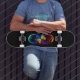 Skateboard Vibrant infinity with rainbow butterfly on black