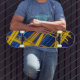 Skateboard Vibrant Yellow Blue Motion Light Urban Abstract