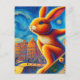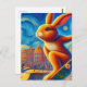 Skateboarding Brown Bunny Surreal Colourful and Fu Postcard