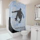 Skateboarding Design Shower Curtain, featuring a skateboarder silhouette against a graffiti-style backdrop. Accent colour can be customized to colour of choice. Great for the skateboarding enthusiast on your shopping list!