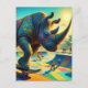 A cute colourful surreal Rhino on a skateboard AI generated art