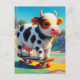 Skateboarding Surreal Colourful and Fun Cow Postcard