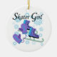 Our Skater Girl design T-shirts, mugs, bags, cards, pillows, wall clocks, keepsakes, hoodies, and other skating theme items features a pair of blue and lavender skates and mittens on a string surrounded by lots of wintry snowflakes and text that reads Skater Girl!