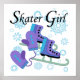 Our Skater Girl design T-shirts, mugs, bags, cards, pillows, wall clocks, keepsakes, hoodies, and other skating theme items features a pair of blue and lavender skates and mittens on a string surrounded by lots of wintry snowflakes and text that reads Skater Girl!