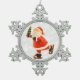 Skating Santa with Tree Snowflake Pewter Christmas Ornament