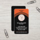 Simple Black orange elegant modern, minimalist elegant and professional business card design template fields for name, company name/title, logo and contact information. Change font colours, move and resize elements with the customization tool.