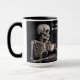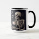 These skeletons are very optimistic. They are sitting around the table on the pirate ship facing one another. One says “It could be worse…”. The other says “yea, we could be out of coffee!” Enjoy the customizable mug. You can change the saying as well as the names on the mugs the characters are holding.