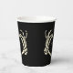 Add a creepy, personalized touch to your wedding with these paper cups. These disposable cups are black and feature an illustration of skeleton hands in a heart shape framing the bride and groom's names and wedding date. The graphic and text are in a cream or ivory colour. The macabre style is perfect for October weddings or events with a goth theme.