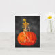 Whimsical skeleton sitting on a mean looking Jack O Lantern cute customizable Halloween blank note card. I've left the card blank so you can add your own personal message by clicking on Customize. You can also add any text you like to the front of the card. This image is available on many products.