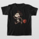 This playful illustration features a unique take on the classic Mickey Mouse character, designed as a skeleton for Halloween. Mickey is depicted in a dynamic pose, with exaggerated skeletal features and large, expressive eyes. His iconic ears remain prominent, even in skeletal form. He is cheerfully running and holding a jack-o'-lantern bucket, ready for a night of trick-or-treating.
