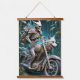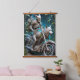skeleton on a chopper mounted with a wolf head hanging tapestry
