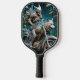 skeleton on a chopper mounted with a wolf head pickleball paddle