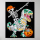 Skeleton Riding Dancing Dab Dinosaur T Rex Hallowe Poster