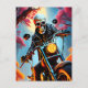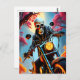 a skeleton Riding through the fire cave. entering into the Enchanted tunnel.He has a hopped-up bike .He has a black leather trousers and motorcycle boots And a black leather jacket with bone emblem design like a design on the biker outfit .He ethereal glow from his surroundings .With the moon coming up behind him. Haze rising up from the fire around him. into the dark night he rids away with night stars above.