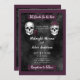 Darkly beautiful wedding invitation with Till Death Do Us Part saying, skeleton skulls with roses and a moody black background over purple background. The back of the invitation has skulls together. Perfect for a gothic or Halloween wedding.