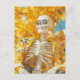 AI generated art of a skeleton in a yellow suit with sunglasses on sitting under an autumn tree with yellow leaves