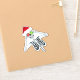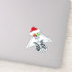 This vinyl sticker has a half skeleton with a big smile wearing a red Santa Hat with white fur and holding and holding two Bright Christmas ball decorations up to his eyes, one is red the other is green.