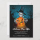 Halloween party invitations feature a spooky skeleton in a hop hat holding a scary jack o' lantern on a dark Halloween night. Fun for Halloween costume party invitations, scary kid's birthday party invitations, adult Halloween costume party invitations, just change the wording to fit your occasion. MATCHING items in our store.