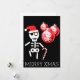 Skeleton with candy cane, santa hat holiday card