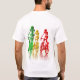 Just passing through. Red, yellow and green skeletons on bicycles -- forward on front of shirt, from behind on the back of shirt.