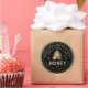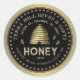 Vintage skep with bees and gold gradient border. Common honey net weight conversions: 8oz (227g), 12oz (340g), 16oz (454g), 32oz (907g), 5lb (2.27kg).