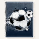 This notebook is shown in a regular shape with sketch pages in a art print of a soccer ball.