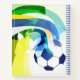 This notebook is shown in a regular shape with sketch pages in a art print of a soccer ball.