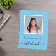 A baby blue background. Personalize and add your own photo. Add a name and a title. The title is written with a modern hand lettered style script with swashes. Black coloured letters. A notebook for sketching your kids, for for your home office.