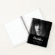Personalizable Details: Customize your sketchbook with your first name and additional text. Your name will be elegantly written in a modern hand-lettered style script with crisp white text, ensuring it stands out beautifully against the black background.