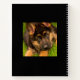 A black background. Personalize and add 2 of your own photo of your dog or pet. Add your name and a title. White coloured letters. A notebook for sketching your dog, taking notes or for school homework.