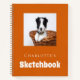 A trendy burnt orange coloured background. Personalize and add 2 of your own photo of your dog or pet. Add your name and a title. White coloured letters. A notebook for sketching your dog, taking notes or for school homework.