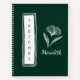 On a rich emerald green background are a white line art floral sketch and frame containing example text "Sketches" - identifying the purpose of this personalized notebook. You can change both the sans serif font notebook title and personal name in script typography using the handy drop-down template. Before checking out, you might also wish to review the soft versus hard cover style, the spiral colour options, and the 10 inside paper types that are available. The default for this notebook is blank pages for sketching.