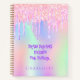 A trendy holographic coloured background with unicorn and rainbow pastel colours in pink, purple, mint green. Decorated with drips in pink and purple. Personalize and add a name. Quote: Draw dreams. Design the future