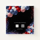 A chic white background. Decorated with patriotic coloured balloons in red blue and white. Personalize and add a name and a title. Red and blue text.