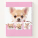 Create your own unique photo collage. Use four, 4 of your favourite photo. Personalize and a name and text. A pink background, hot pink text.