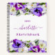 Two elegant borders of violet, lavender coloured, purple and white flowers, pansies on a white background. Personalize and add a year, name and title. Purple letters. The name is written with a modern hand lettered style script with swashes.