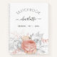 A chic white background with rose gold and white florals and silver foliage. Personalize and add your name, title and year. The name is written with a modern hand lettered style script with swashes.