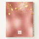 A dark rose gold faux metallic looking background with dripping faux golden stars. Decorated with a faux gold geometric frame and burgundy, pink and rose gold coloured flowers, florals. Personalize and add your monogram letters, initials and a title. Burgundy coloured letters. Can be used as a sketchbook, diary, taking notes, to-do lists.