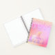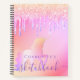 A trendy iridescent coloured background with unicorn and rainbow pastel colours in pink, purple, rose gold. Decorated with faux glitter drips in rose gold, pink, purple and a rainbow coloured unicorn. Personalize and add a name. The title: Sketchbook is written with a trendy hand lettered script with swashes. To keep the swashes only delete the sample name, leave the spaces or emoji's in front and after the name.